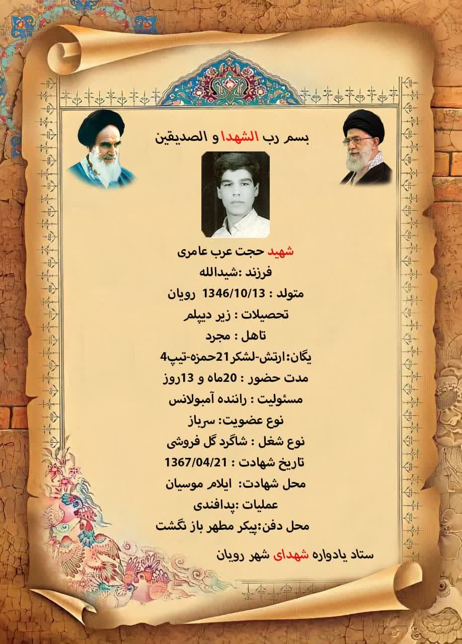 یک نفر بنام آقای شریعتی اهل قلعه نو خرقان هم خدمت اخوی ما بود که ایشان درگروهان دیگری بود. حجت در گروهان دسته بهداری بود و راننده آمبولانس بود.آقای شریعتی موقع مراجعه ما به منطقه در مرخصی بود. دقیق بیاد ندارم که باهاش تماس گرفتم یا حضوری دیدمش. گفت من دو سه روز دیگه میخوام برگردم منطقه اونجا تحقیقات میکنم بهتون اطلاع میدم. یک هفته بعد نامه نوشت و گفت بچهها گفتند که حجت با آمبولانس برای انتقال مجروح رفته بوده که یک دفعه آمبولانس به محاصره عراقیا در میاد و دیدیم افرادی از داخل آمبولانس پیاده شدند و سوار تانک عراقیا شدند.