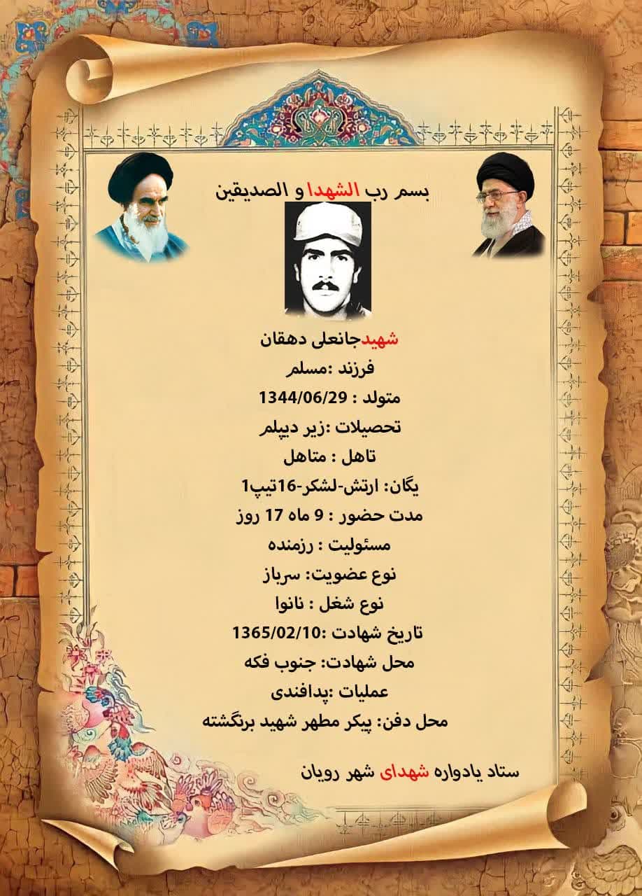 به نقل از همسر بزرگوار شهید جانعلی دهقان